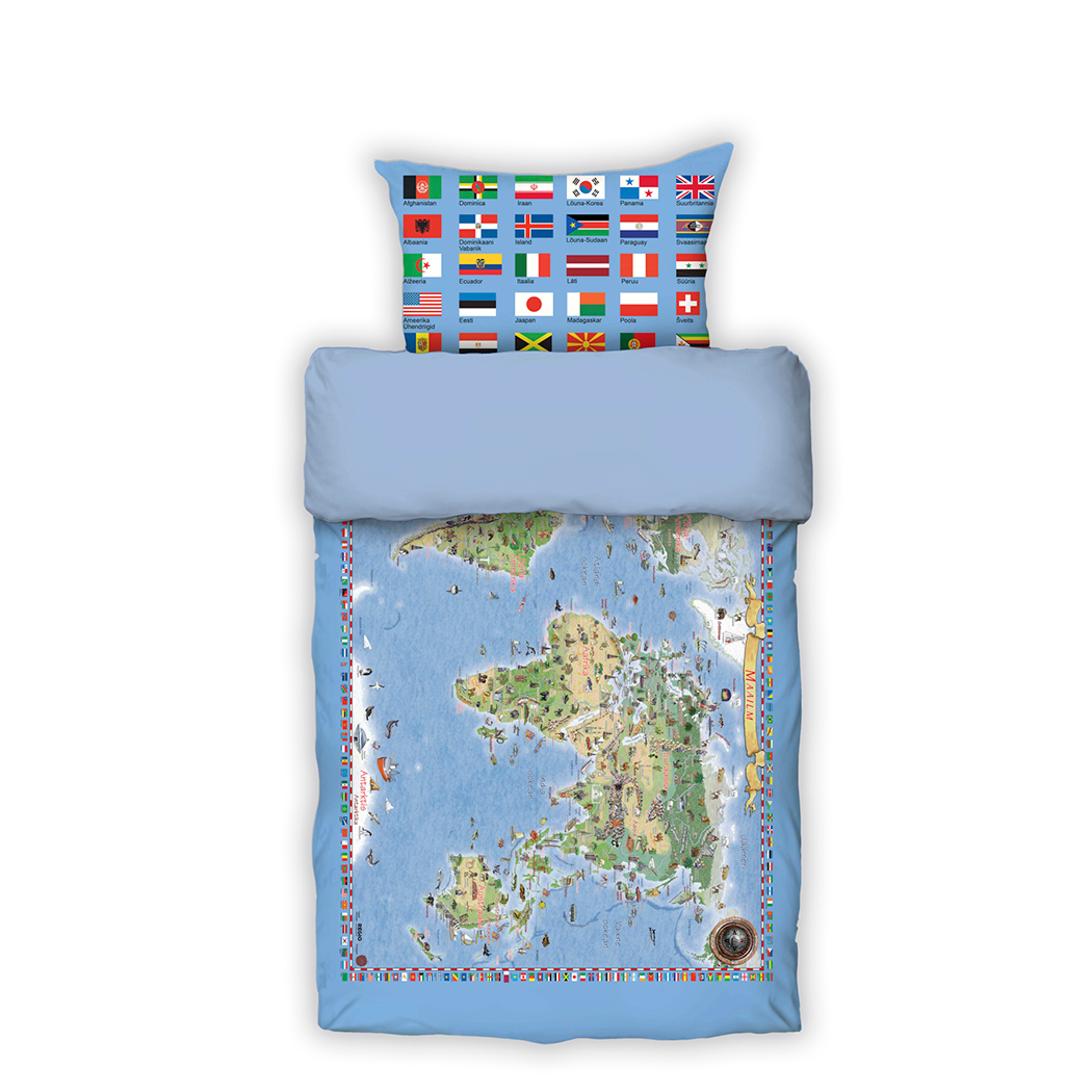 Uneteedel rännates on hea üks korralik maakaart enda läheduses hoida. Olgu see siis reis kaugel kosmoses või hoopis mööda maid ja mandreid seigeldes, gloobuse kaardiga voodipesu on siin hea kaaslane. Komplekt: tekikott 150 x 210 cm ja 1 padjapüür 50 x 60 cm. Materjal: pehme ja mõnus puuvill-satiin (100 % puuvill), kangas ja värvid peavad pesule väga hästi vastu.