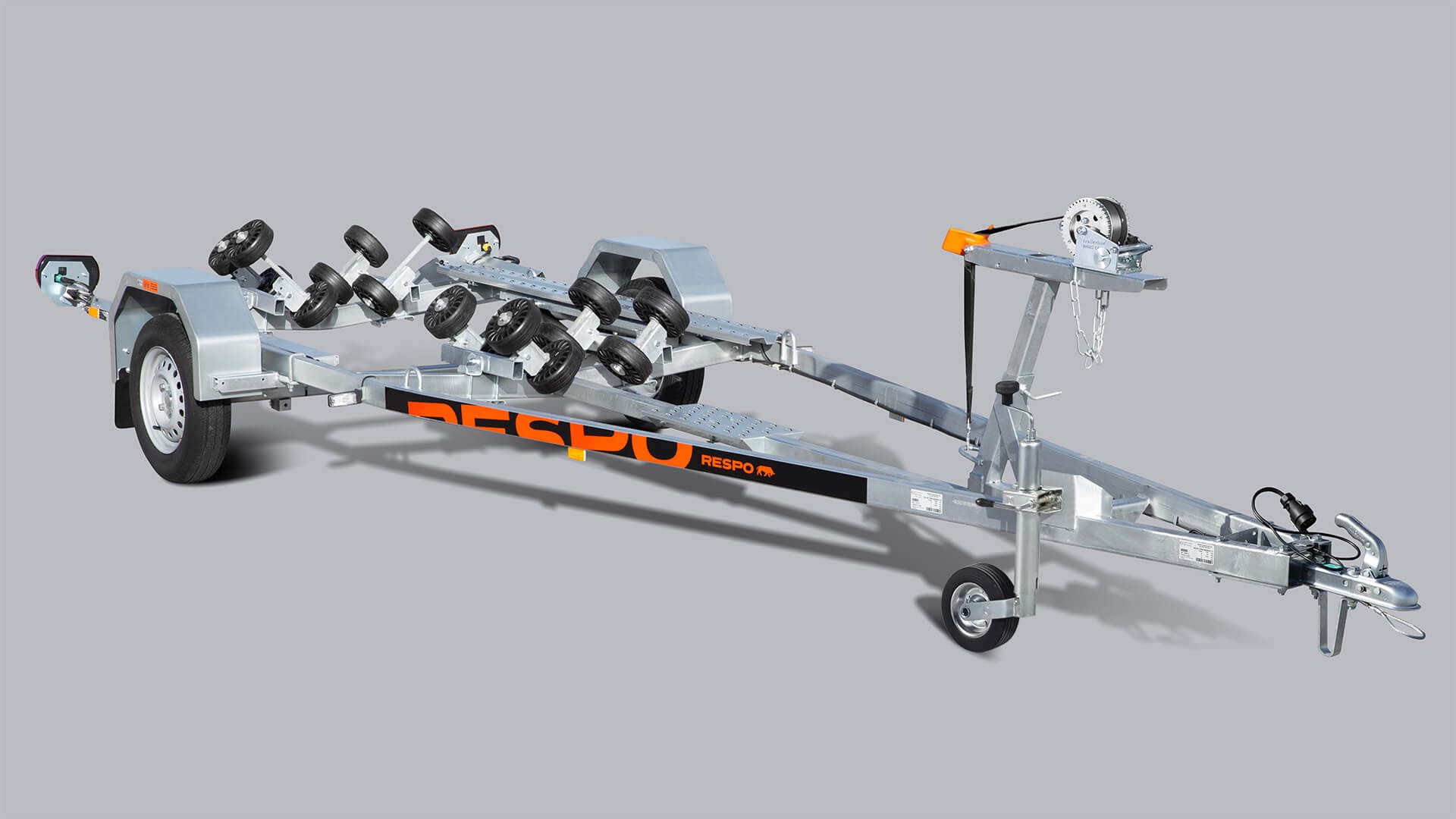 Uuenduslik isereguleerivate 16 rulliga multirulli süsteemiga haagis, mis kindlustab palju sujuvama ja ohutuma paadi maha- ja pealelaadimise. Ülitugev ja vastupidav tsingitud keevisraam. Spetsiaalsed peal seismist taluvad astmelaudadega metallist poritiivad, mis tagavad suurema funktsionaalsuse ja mugavuse.