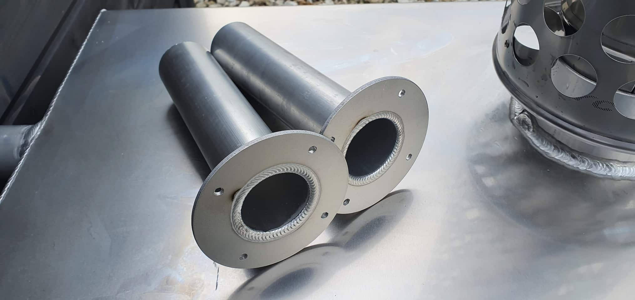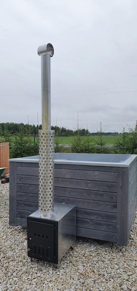 Komplekti kuuluvad 2 meetri kõrgune roostevabast terasest korsten ja ühenduskomplekt ahju ühendamiseks tünni külge. Vastavalt kliendi soovile on võimalik tellida läbivoolutorude paigutus kas ahju tagumisele või külgmisele küljele.