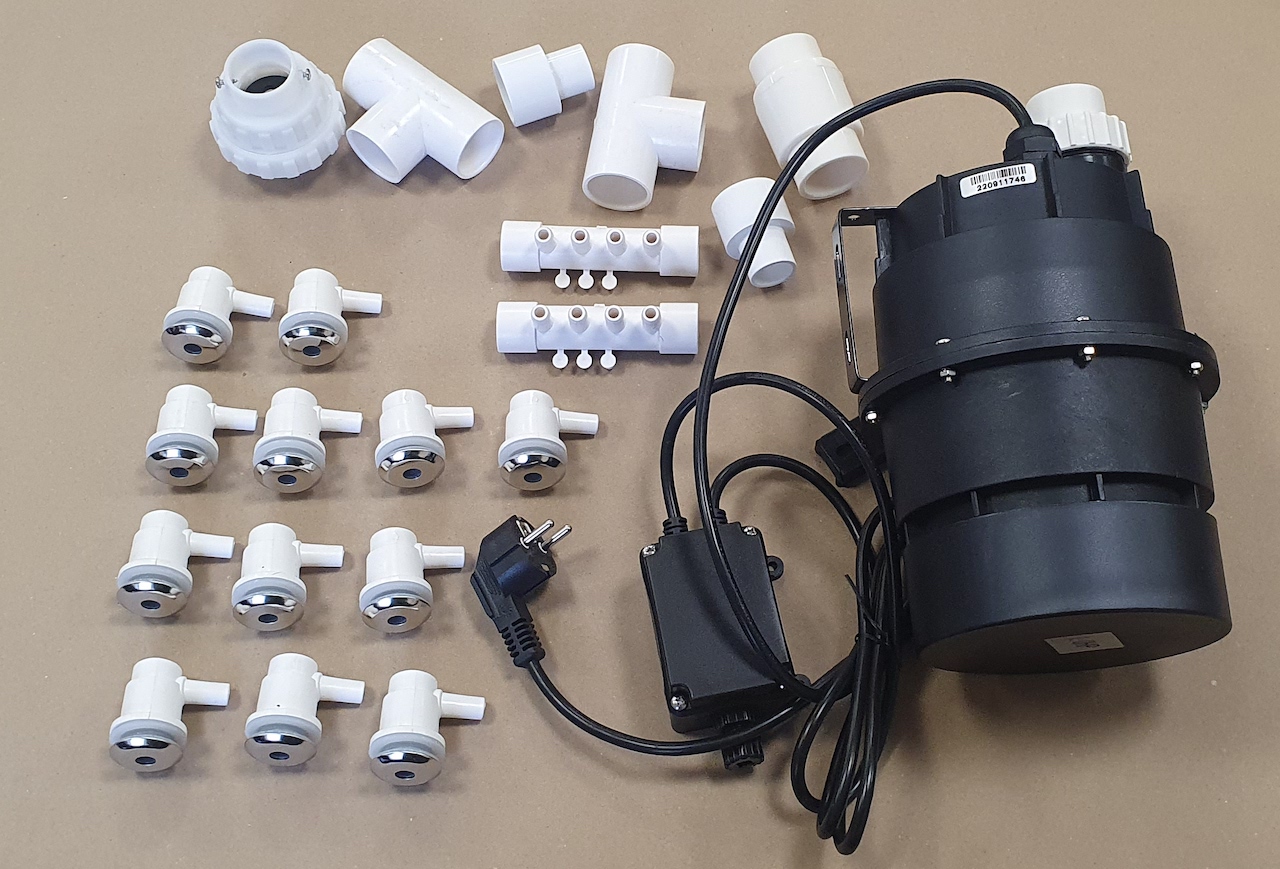 Kümblustünni mullisüsteem on võimas 12 düüsiga õhuga töötav lahendus. Õhk pumbatakse läbi komplektis olevate õhudüüside, mida võib paigaldada vastavalt soovile sobivale kõrgusele.