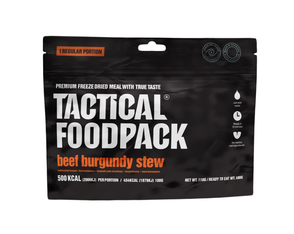 Tõeline Prantsuse köögi pärl – Burgundia pada veiselihaga. Veiseliha kohtub selles roas toekate köögiviljadega ning punase veini kaste viib kogu maitsete koosluse restorani tasemele. Valmistoidu kaal u 490 g. Energiasisaldus portsjoni kohta: 2066 kJ / 500 kcal. Valmistoit – lisa 380 ml kuuma vett ja oota 15 minutit. Naturaalne koostis, ei sisalda säilitus- ja lisaaineid. Säilivusaeg: 8 aastat tootmise kuupäevast. Toodetud Saksamaal. Koostisosad: Veiseliha (27%), kartul, porgand, punane vein (sisaldab sulfiteid), tomat, sibul, vesi, seened, või, sool, küüslauk, suhkur, porrulauk, nisujahu, kartulitärklis, pipar, tüümian, rosmariin, basiilik, pune, kadakamarjad, loorberilehed.
