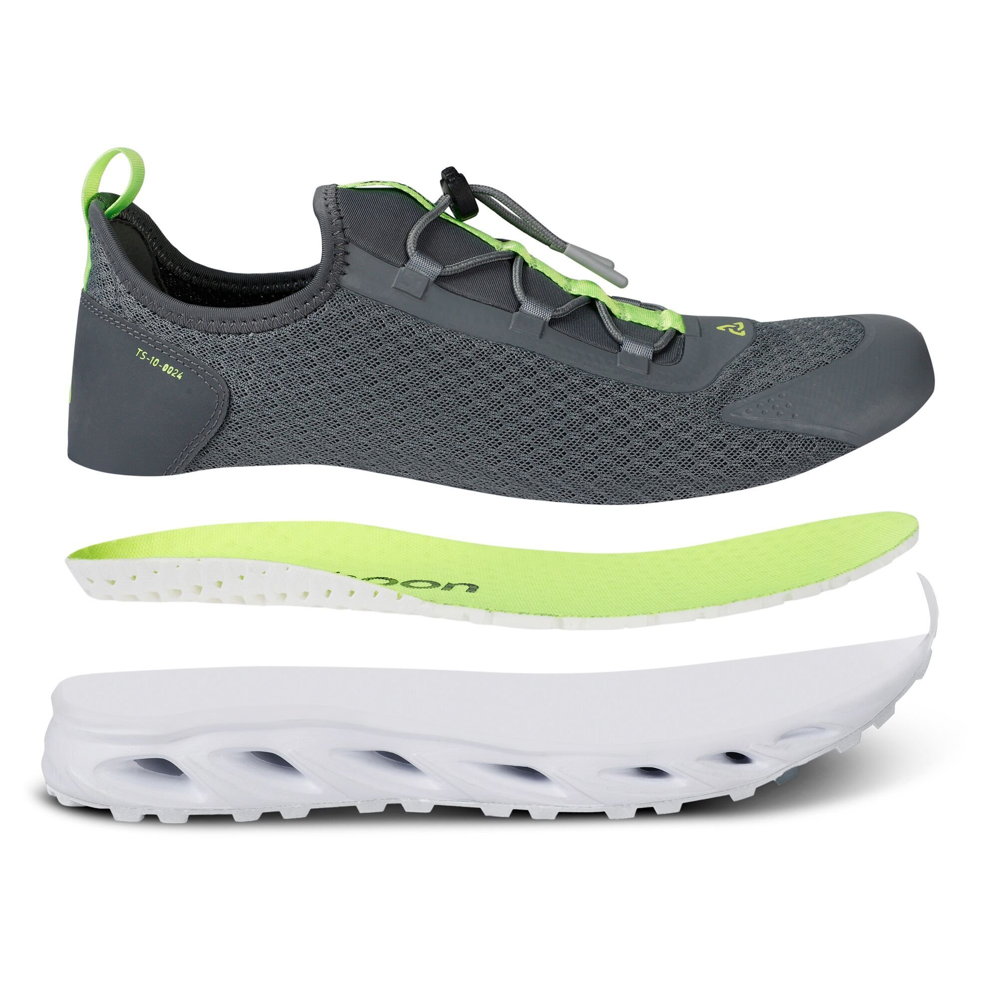Typhoon TS10 tossud on praktilised ja vastupidavad, mis sobivad ideaalselt veespordijalatsiteks. Tossudel on libisemiskindel kummist hea haarduvusega tald, mis ei jäta jälgi. Tallal on veeväljalaske augud. Omadused: Libisemiskindel kummist tald 15 mm, EVA välistald drenaažisüsteemiga, Tugevdatud kanna- ja varbaosa, Reguleeritavad paelad fiksaatoriga.