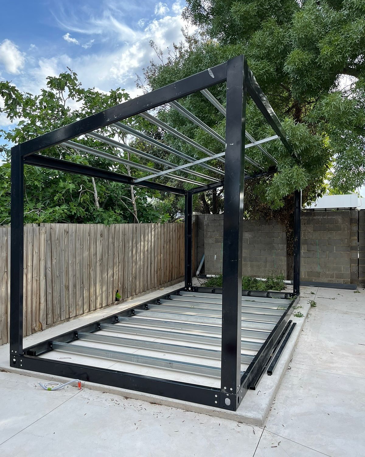 See tsingitud terasraam on varustatud pulberkattega, mis tagab kõrge korrosioonikindluse ja vastupidavuse ka välitingimustes. Raami materjal on tugev — peamine terase paksus on 2–3 mm, mistõttu sobib see nii ajutiste kui püsivate projektide jaoks.