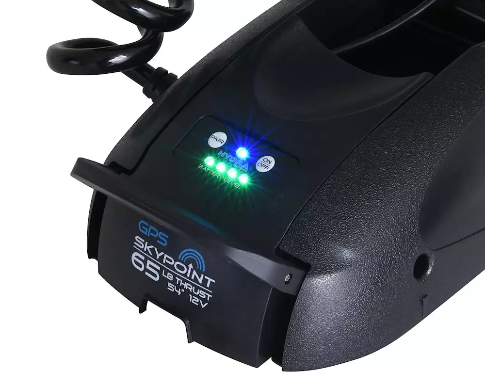 Hydra Skypoint GPS 65 on vöörimootor, millel 65lb tõukejõudu, 12V toitepinge ja jala pikkuseks 54” (137cm). Ehk siis näitajatelt igati sobilik väiksematele, kuni 5.2 m paatidele taevaankruna toimetamiseks. Kui see 65lb on tõene, siis on Hydra isegi 20% võimsam mootor kui Eestis levinud MotorGuide või Minn Kota 55lb 12V mootorid. Mootori päritolu kohta täpsemad andmed puuduvad. Maaletooja väitel pannakse see kokku miskis endises MotorGuide tehases. Eks paljud sõlmed toodetakse nagunii Hiinas või mujal Aasias, aga see on täna samamoodi juba pea kõigil toodetel. Tehnilistelt andmetelt on mootor üpris sarnane muudele 12V mootoritele. Toiteallikana on soovitav kasutada plii- või liitium-püsitoiteakut, optimaalse mahtuvusega vahemikus 80-120Ah. Klassikalised elektrolüüt-käivitusakud sellele valule eriti pikalt vastu ei pea. Toitejuhtmeid pikendades tuleks kasutada 10-16mm2 läbimõõduga kaableid, kuna seal võib suurema koormuse korral liikuda kuni 50A voolu.