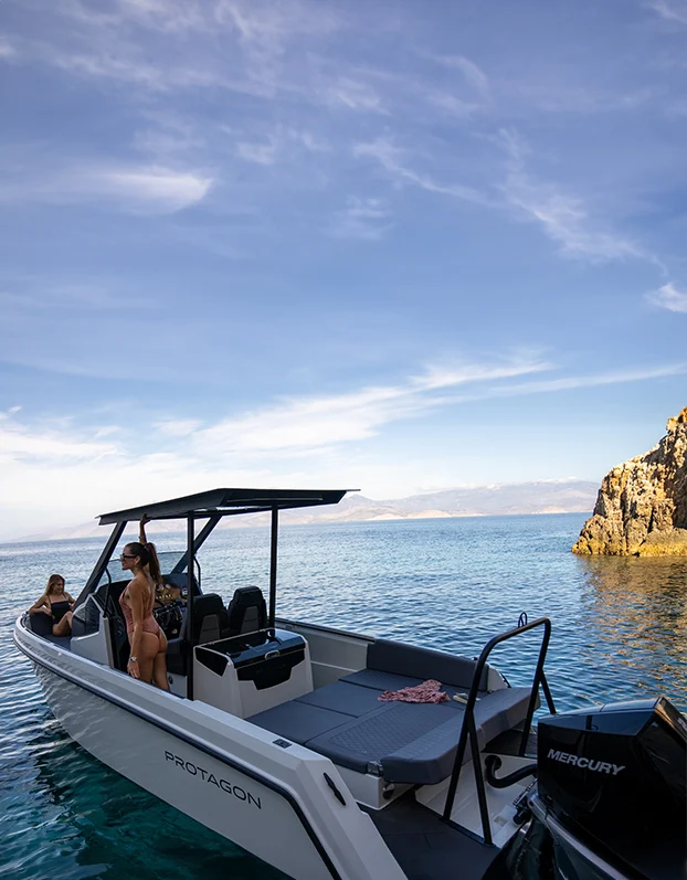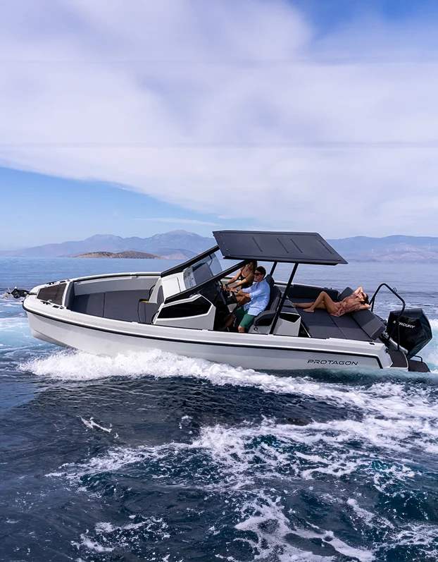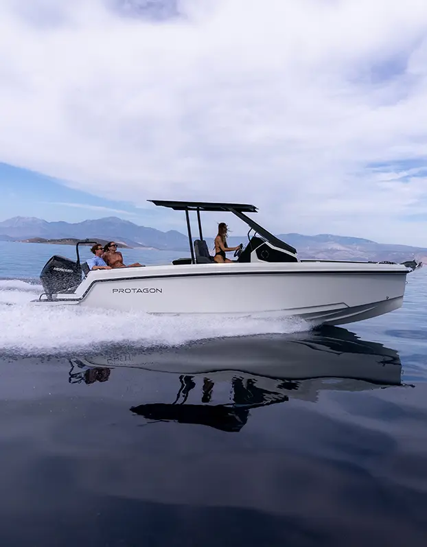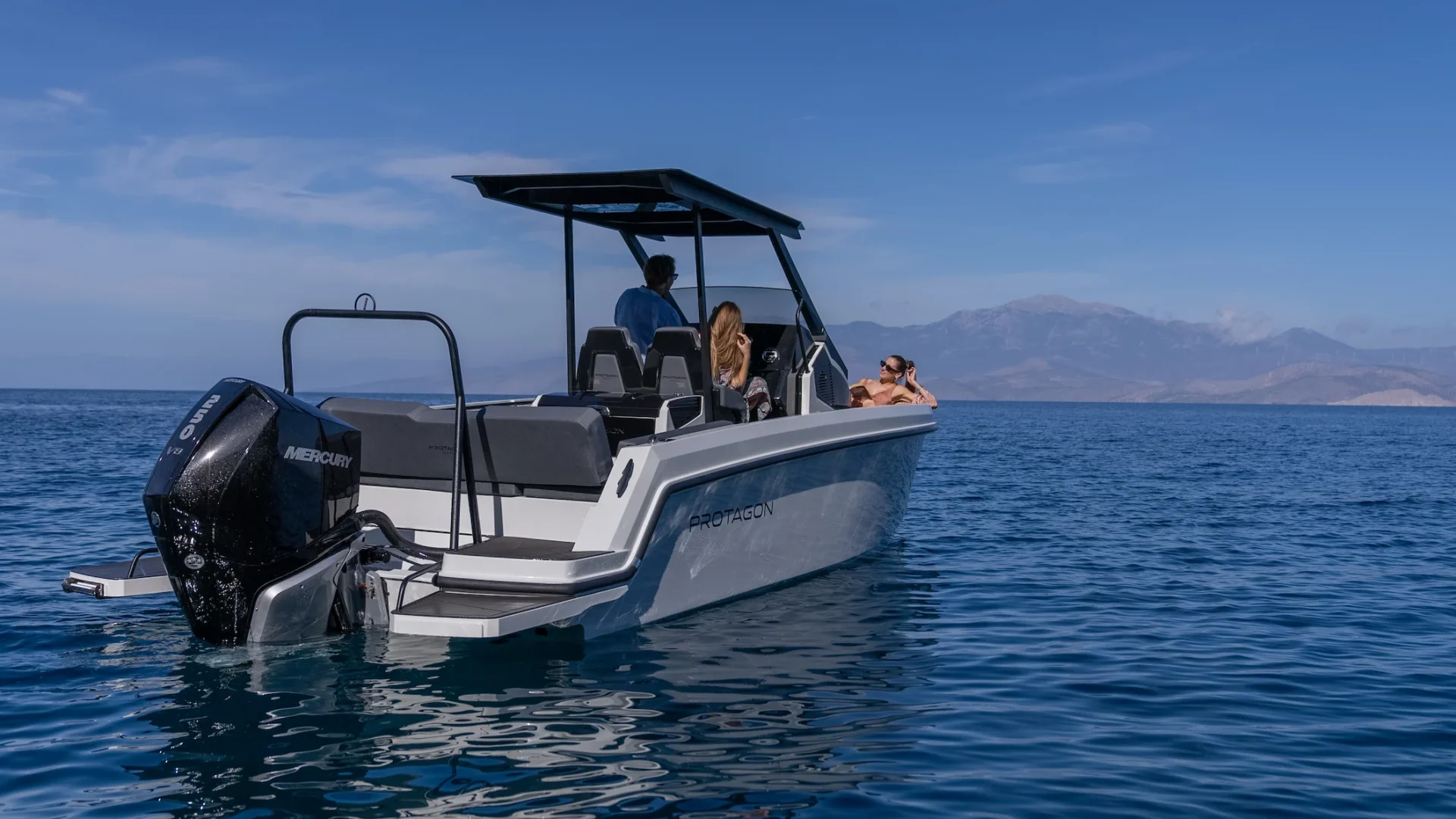 Mootorpaat Protagon 25 Space on elegantne ja sportlik 8 meetrine avatud mootorpaat, mis ühendab silmapaistva sõidumugavuse, ruumikuse ja modernse disaini. Sobib ideaalselt nii päevaretkedeks, lõõgastavaks kruiisiks kui ka aktiivseks veespordiks pere või sõpradega.