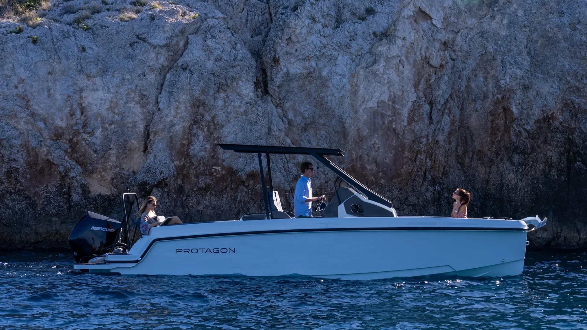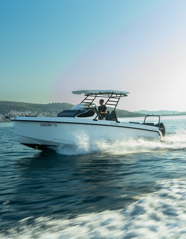 Mootorpaat Protagon 25 Sundeck on elegantne ja sportlik 8 meetrine avatud mootorpaat, mis ühendab silmapaistva sõidumugavuse, ruumikuse ja modernse disaini. Sobib ideaalselt nii päevaretkedeks, lõõgastavaks kruiisiks kui ka aktiivseks veespordiks pere või sõpradega.