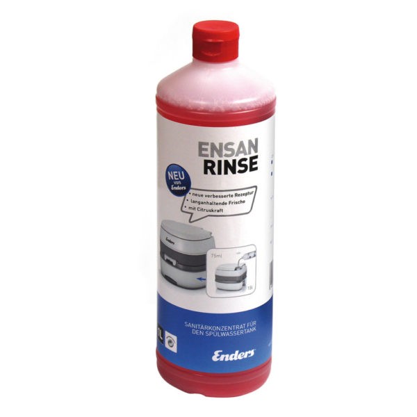 Deodorantvedelik keemilise WC ülemise paagi jaoks on kontsentraat. Kasutamine: 50 ml toodet 10 liitri puhta vee jaoks ülemisel paagil. Hoiab tualeti puhtana ja hügieenilisena. Ensan Rinse katab anuma õhukese kaitsekilega, mis hoiab ära setete kogunemise ja tagab klapi sujuva töö. Ensan Rinse puhastab tõhusalt nii paaki kui ka sulgklappi, vältides katlakivi kogunemist. Tsitruseliste lõhnaga. Ei sisalda formaldetsiidi.. Vastab EMÜ nr. 83/467 ja 84/449 nõuetele ja on keskkonnale ohutu.