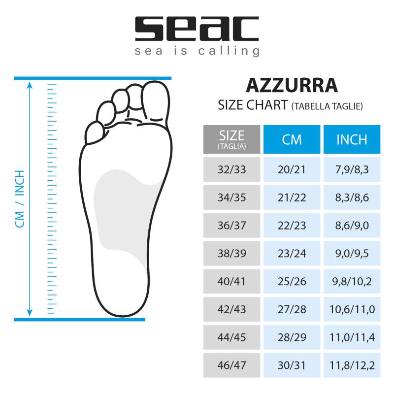 Seac Azzurra lestadel on pehme kummist kinnine jalatasku. Lesta kummist servad lisavad stabiilsust ja vastupidavust. See teeb Seac Azzurra uimedest usaldusväärse kaaslase teie pikemateks veealusteks rännakuteks, mis lubavad ühtlast sooritust erinevates mereoludes.
