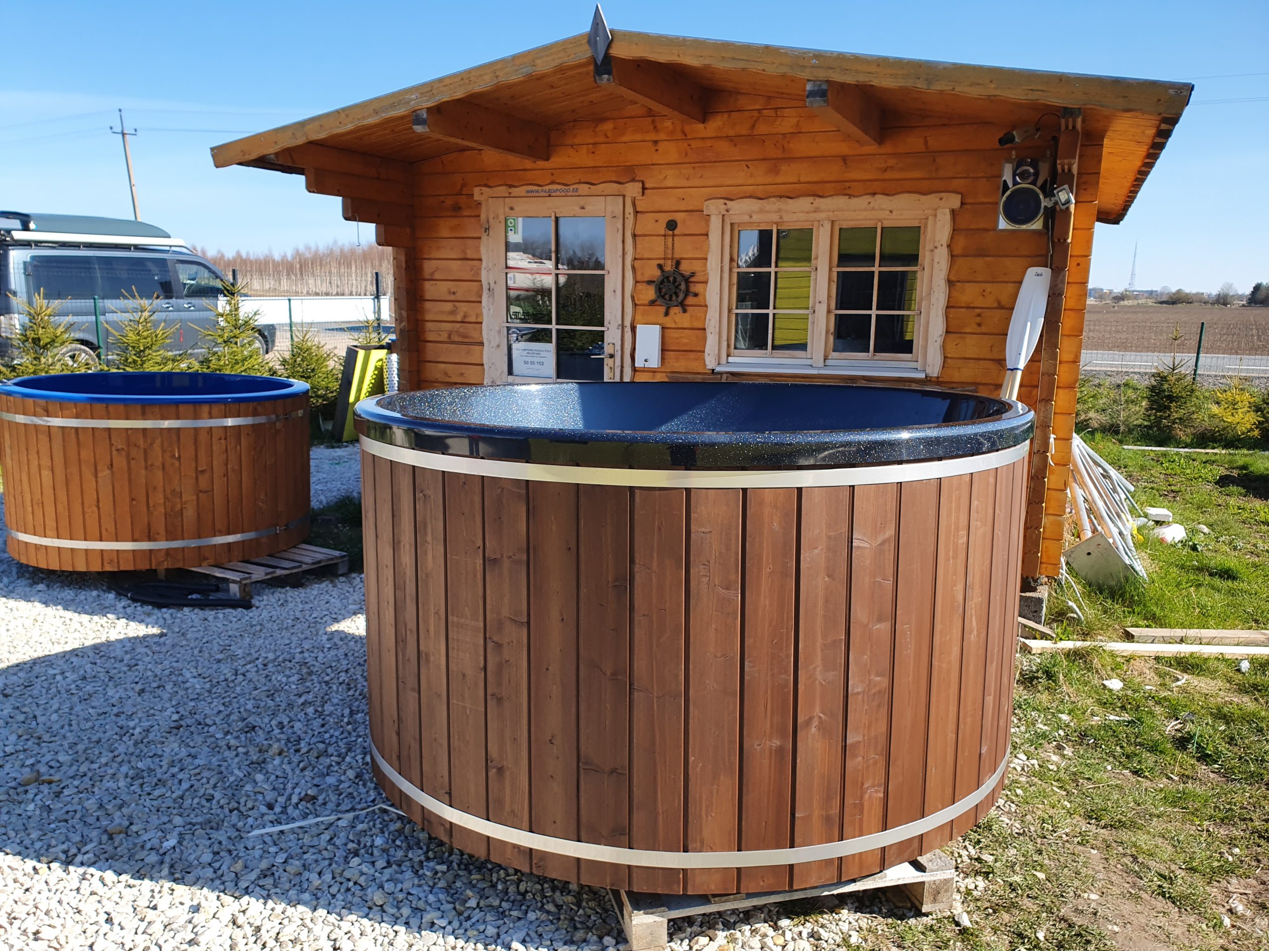 Предлагаем установку купели. Для точной цены установки просим связаться с нами. Купель хорошо устанавливать на ровную поверхность. Землю необходимо покрыть гравием или щебнем, для того чтобы достичь ровную поверхность и изолировать деревянную конструкцию от земли. Для регулировки можно также использовать силикатные кирпичи.
