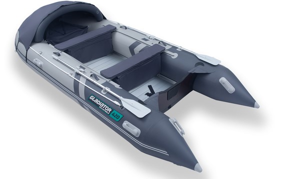 The Gladiator Active series is designed specifically for professional fishing and cruising in the toughest operating conditions as well as fun and short sea cruises. Flexible material and additional reinforcement of polyurethane rollers — all these features give the boat of this series maximum reliability. D-design and inflatable V-Keel guarantee excellent navigation properties. This series is supplied with flooring: AD — Air Deck — high pressure floor. Features: Material of the side swimmers — PVC 850g / m2, floor material — 1100g / m2. Enhanced durability is ensured by added reinforcement on the lateral floats. The boat includes a front tent with an inflatable design, a front bag and removable seat cushions with padding, as well as removable and sliding aluminum seats, pull and pull handles, a footpump, a row, a boat bag, and a repair patch kit with patches.